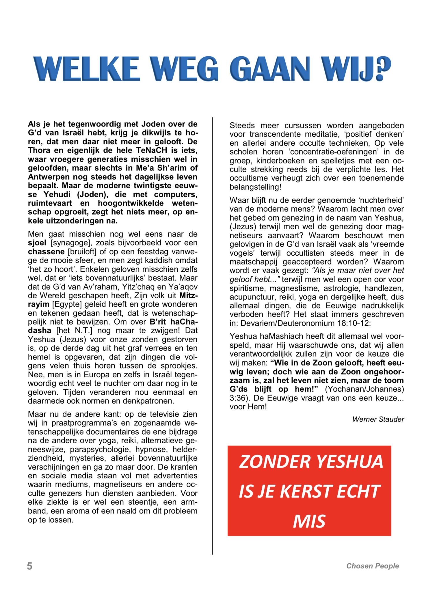 Chosen People 1e jrg nr. 8, december 2020 pag. 5 - Welke weg gaan wij?